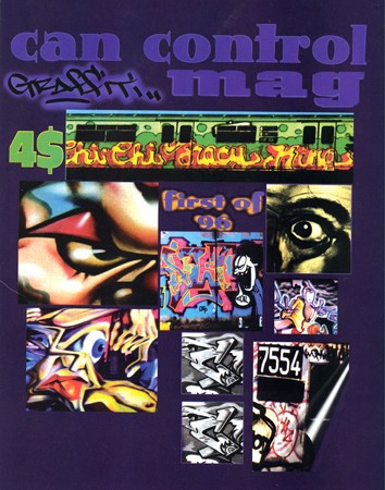 .After one year under our working title of Ghetto Art I branched out alone and changed the name of the ZINE to Can Control! I increased the page count, increased the photo count and started the worlds first mutii page interviews with Graffiti Writers. I also went to color making Can Control the worlds first Graffiti MAG in color.